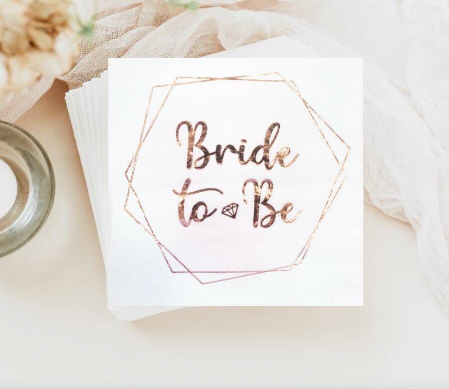 Kağıt Peçete Varak baskılı Bride To Be Rose Gold